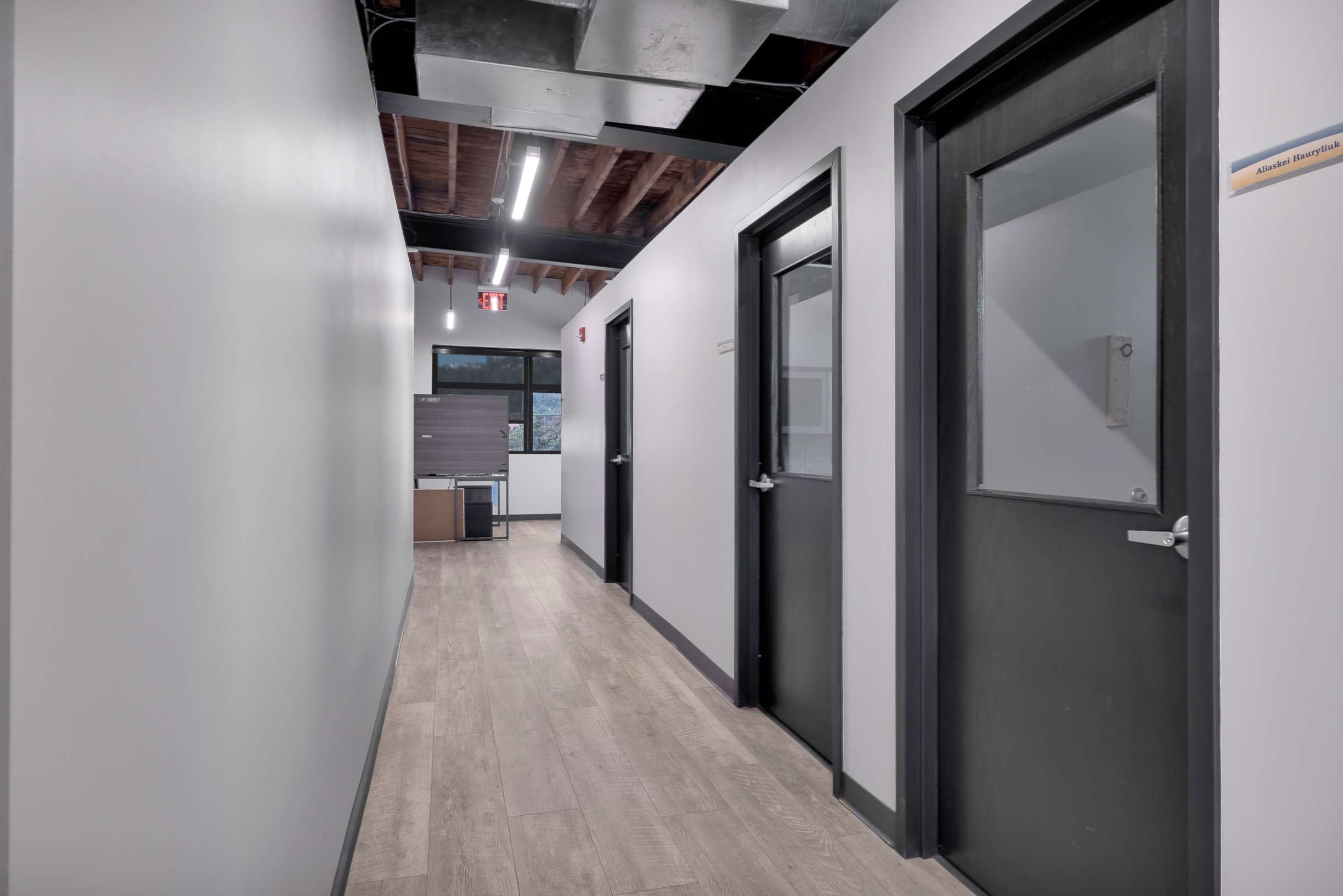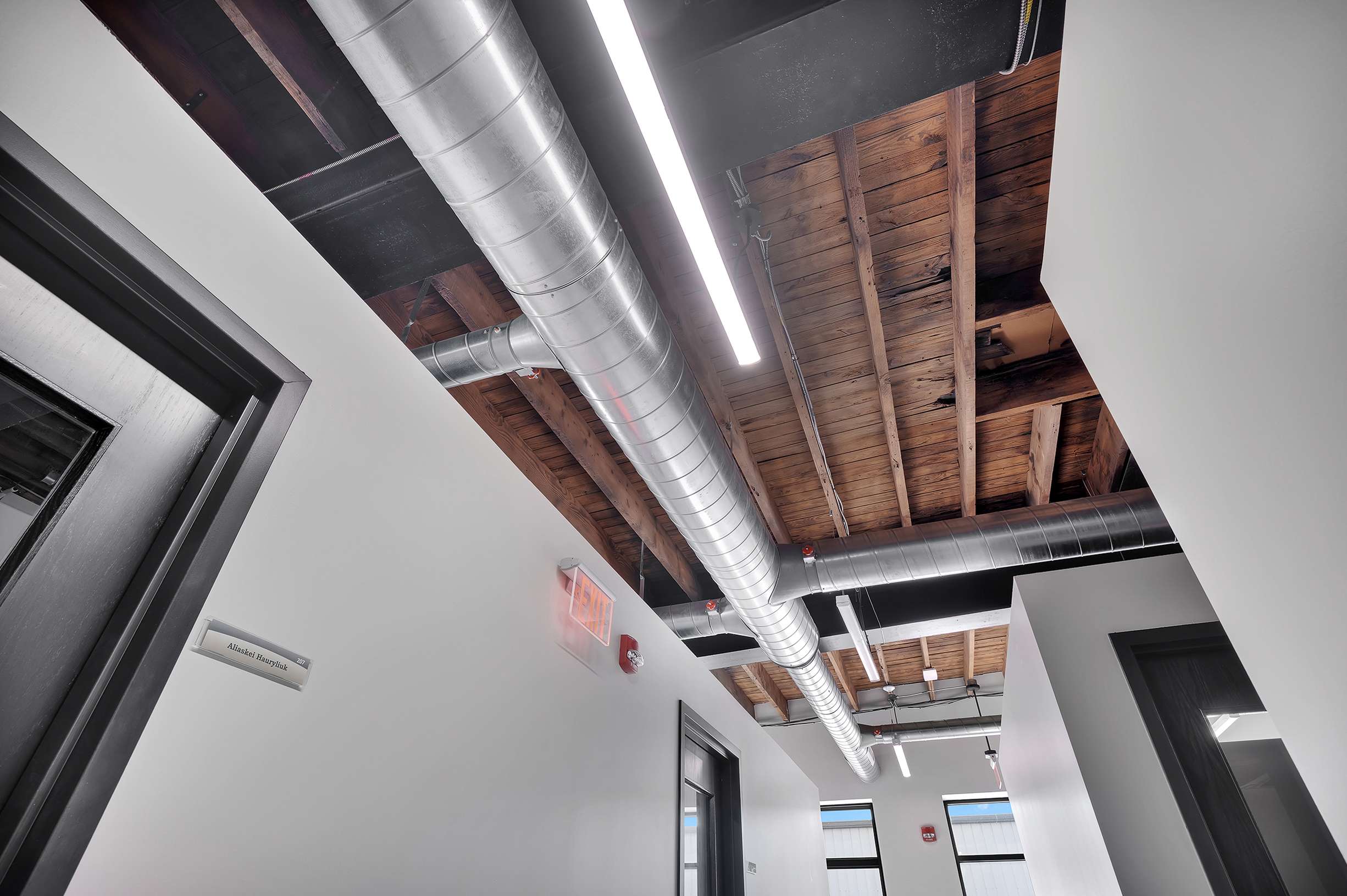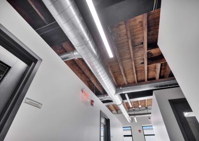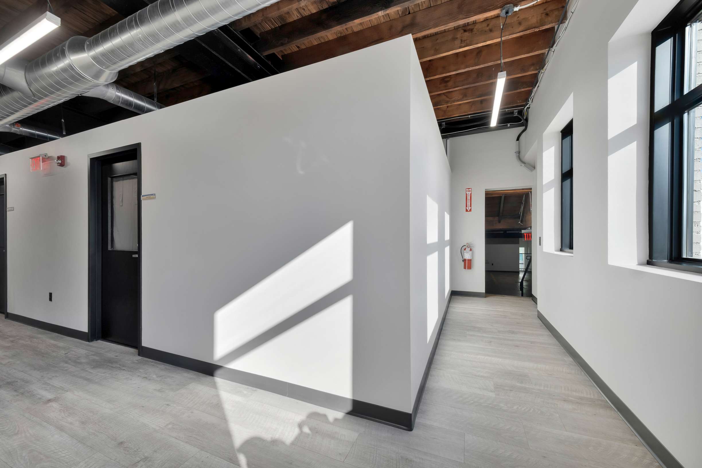 Sentinel transformed a former 15,000-square-foot ice cream factory into modern office and lab space through an innovative adaptive reuse approach. The $2 million renovation included leveling sloped floors, installing a new elevator shaft and MEP systems, and adding new entrances and a glass storefront to create a bright, open, and functional workspace that celebrates the building’s industrial character.