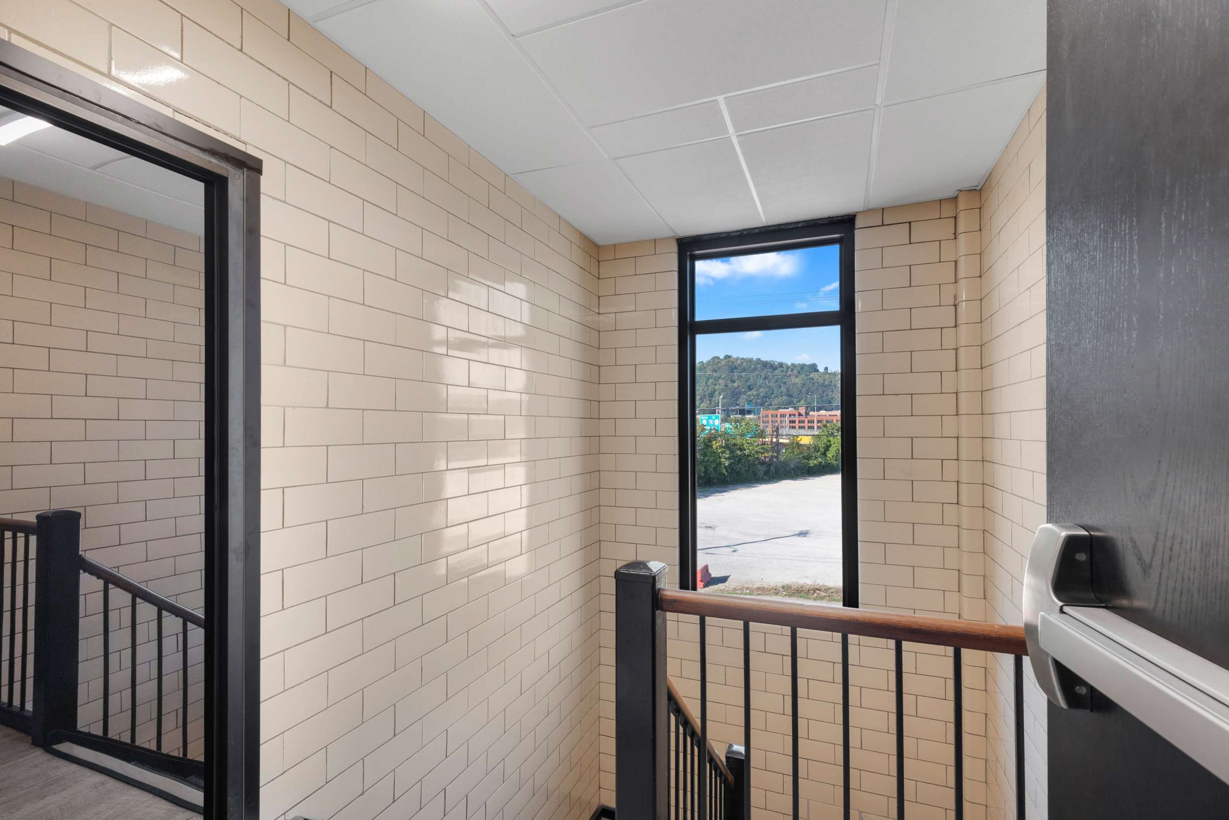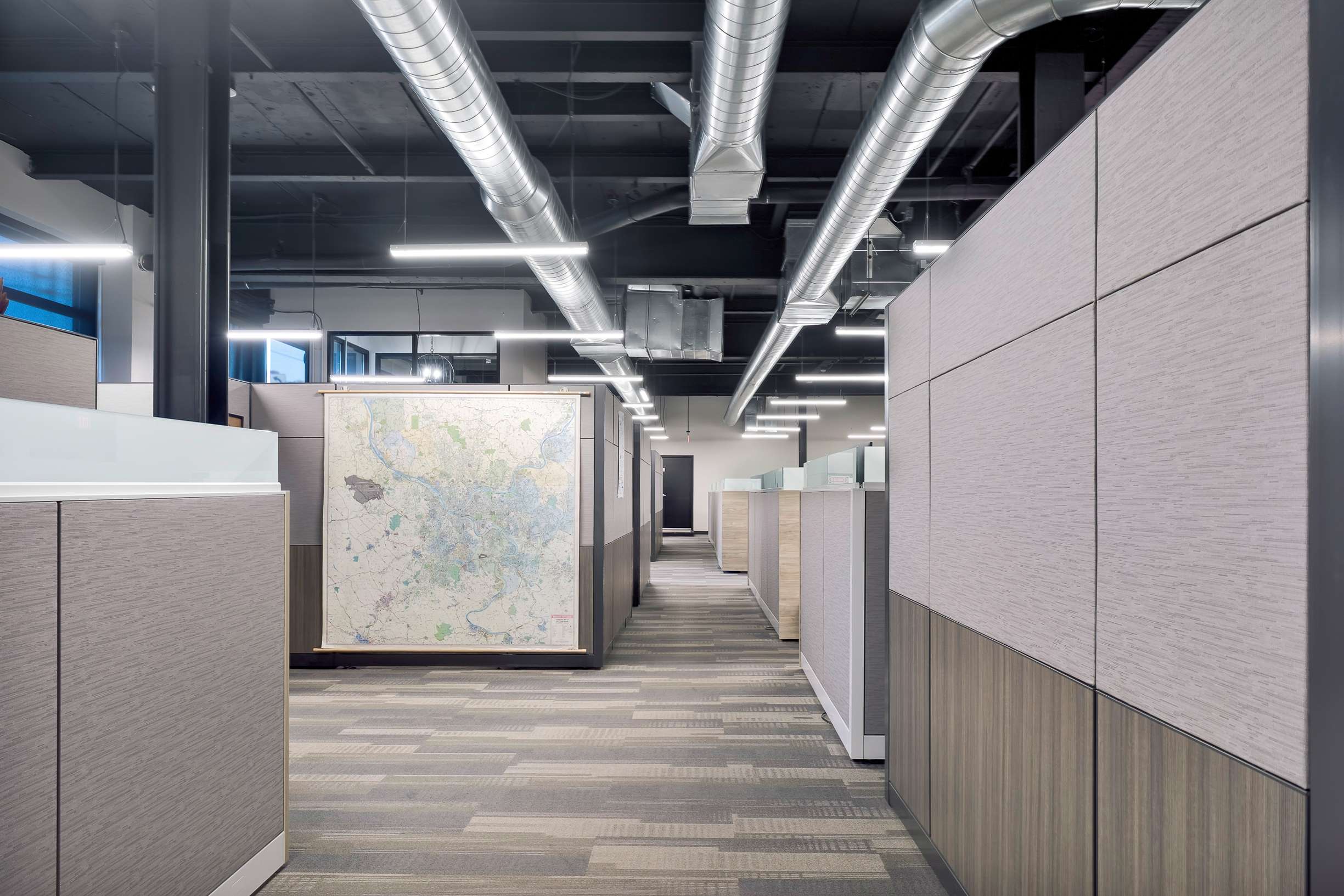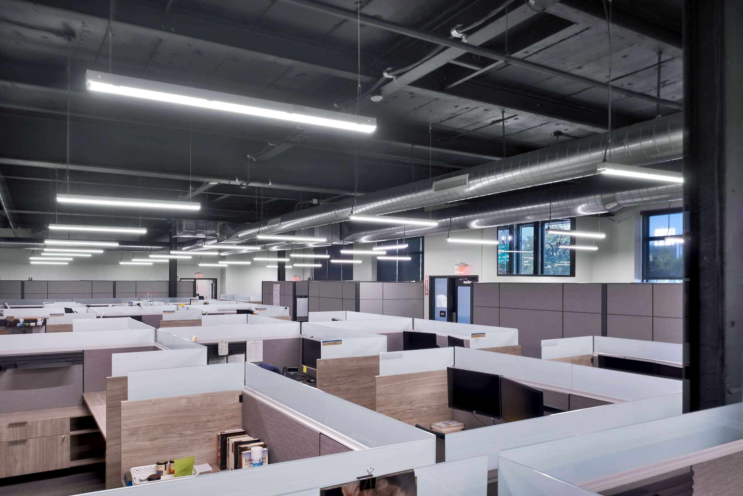 Sentinel transformed a former 15,000-square-foot ice cream factory into modern office and lab space through an innovative adaptive reuse approach. The $2 million renovation included leveling sloped floors, installing a new elevator shaft and MEP systems, and adding new entrances and a glass storefront to create a bright, open, and functional workspace that celebrates the building’s industrial character.